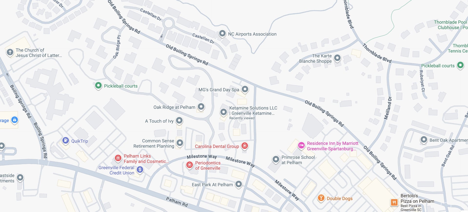 Appointments To schedule an appointment, please call the office during business hours. Get In Touch Call 864-236-1630 FAX 864-203-3222 Visit us 138 Milestone Way, Suite A Greenville, SC 29615 Hours Mon: 10am - 7pm Wed: 10am - 7pm Thu: 10am - 7pm Fri: 10am - 7pm Sat: 10am - 2pm Tue & Sun: Closed Fill out the form below and we will contact you as soon as possible! PhoneThis field is for validation purposes and should be left unchanged.Name(Required) First Last Phone(Required)Email(Required) Enter Email Confirm Email Are you currently a patient?(Required) Yes No Interested in:Interested in:Ketamine TherapyWeight Loss TherapyOther (use the Message box to describe)Your Message Δ Directions with Google Maps Directions with Apple Maps
